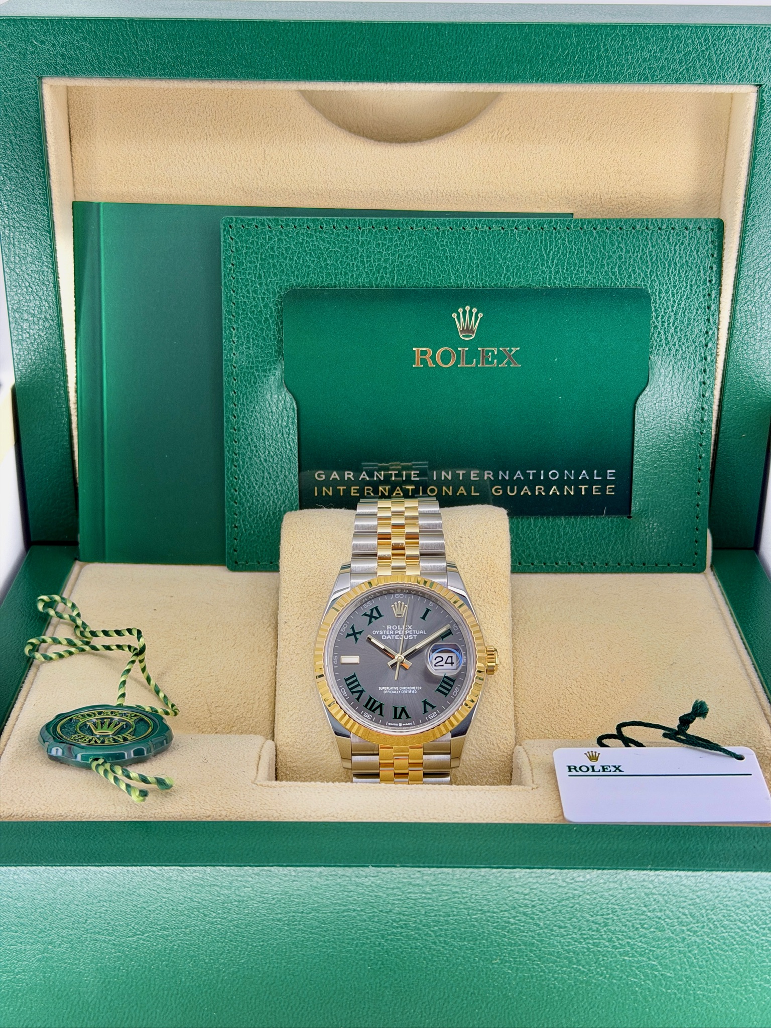 Box, papers & accessories – Original box, warranty card, booklets, extra links, and straps all add value.
