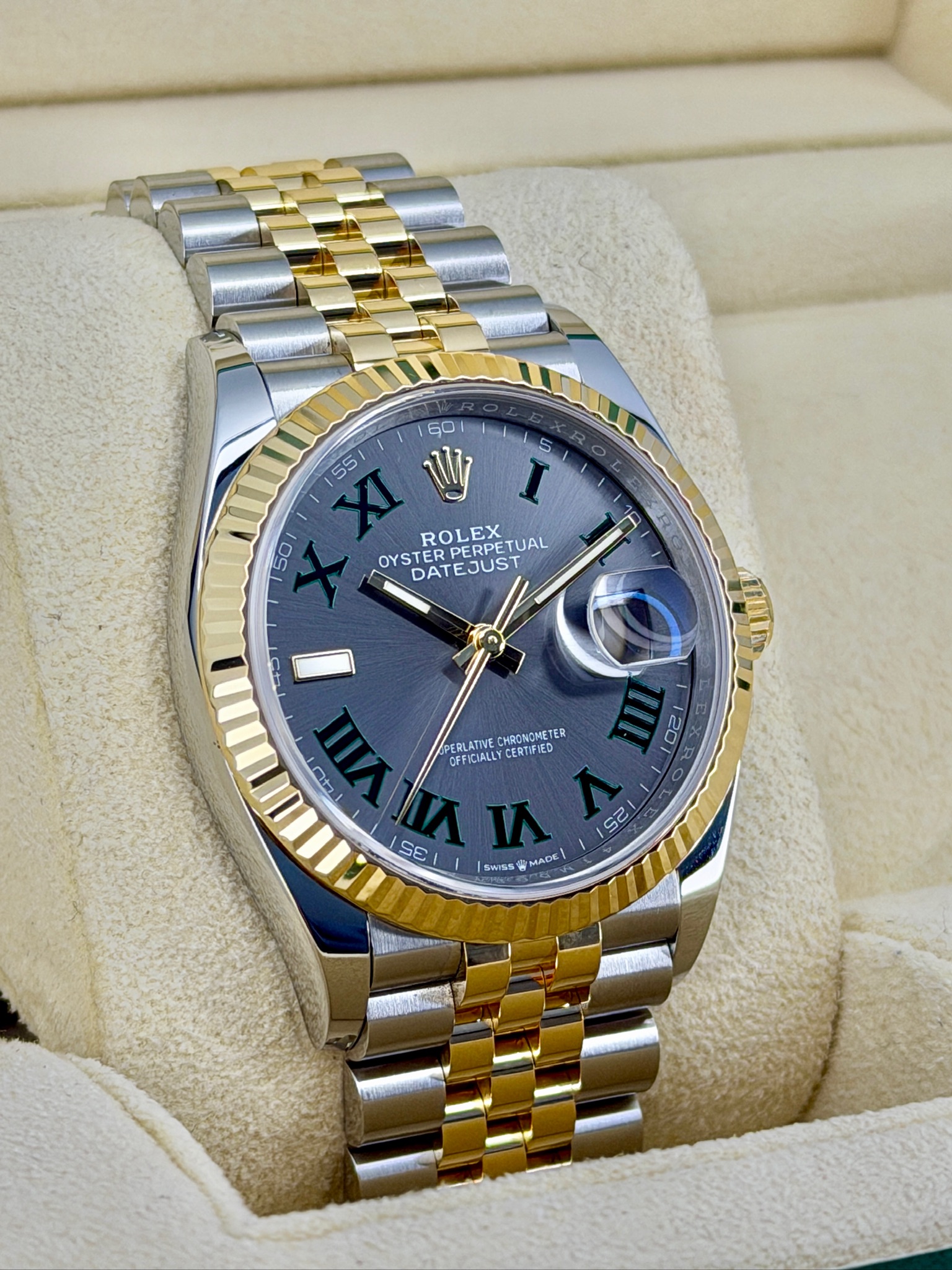 This pre-owned Rolex Datejust 126233 is one of those watches that just works for any occasion. The two-tone Oystersteel and yellow gold give it that classic Rolex look—luxurious without being over the top. It wears comfortably on the wrist and has that timeless style that never goes out of fashion. Whether you’re dressing it up for work or wearing it casually on the weekend, this Datejust is reliable, sharp, and instantly recognizable. A true everyday luxury watch you’ll enjoy for years.