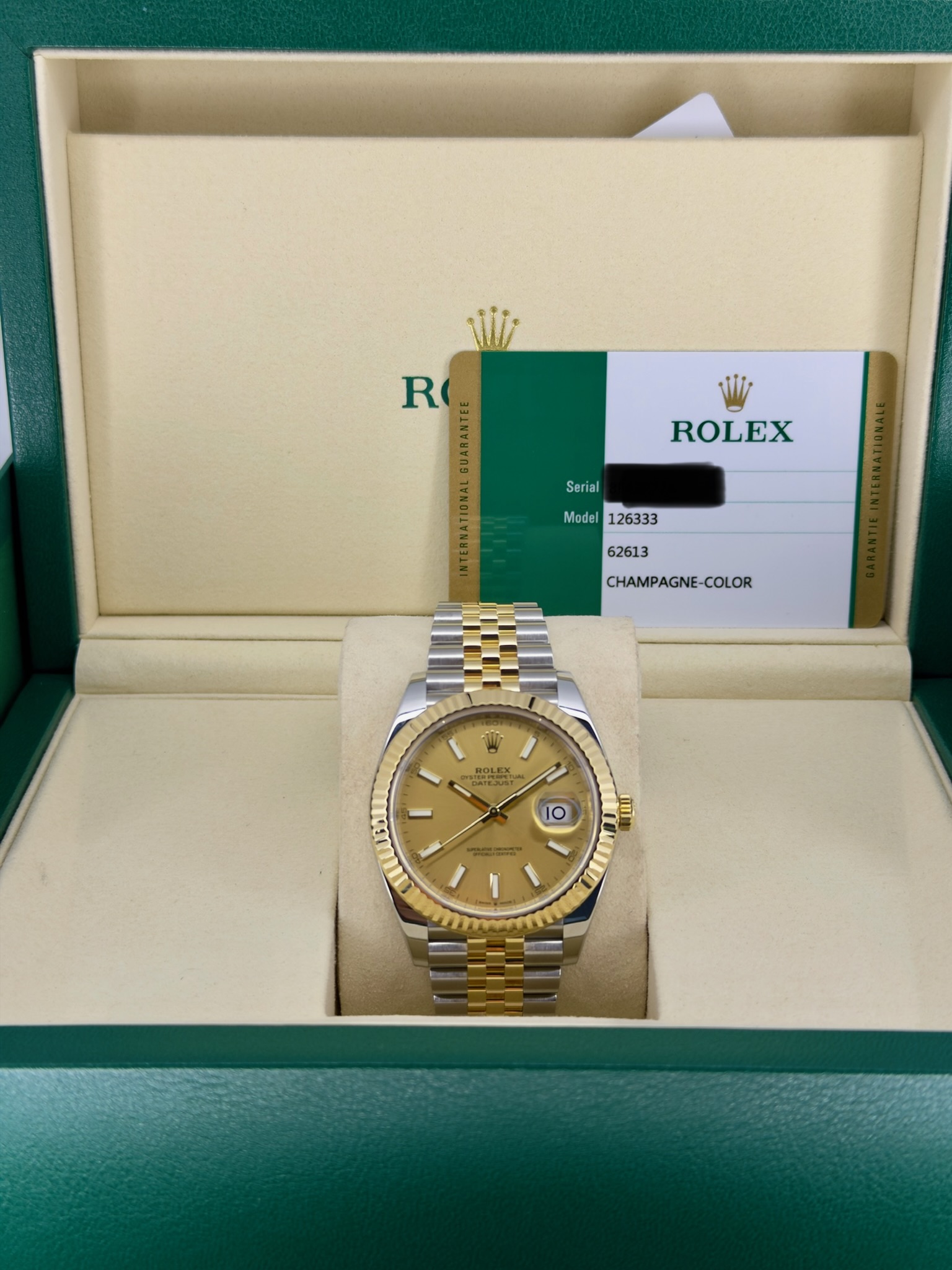 This pre-owned Rolex Datejust 126333 is the perfect mix of classic and modern. The two-tone stainless steel and gold design gives it a sleek, polished look without being too flashy. Comes with its original box and papers, so you know it’s legit. Smooth, reliable, and easy to wear every day, it’s one of those watches that just works with everything in your wardrobe. A true Rolex that’s effortlessly stylish.