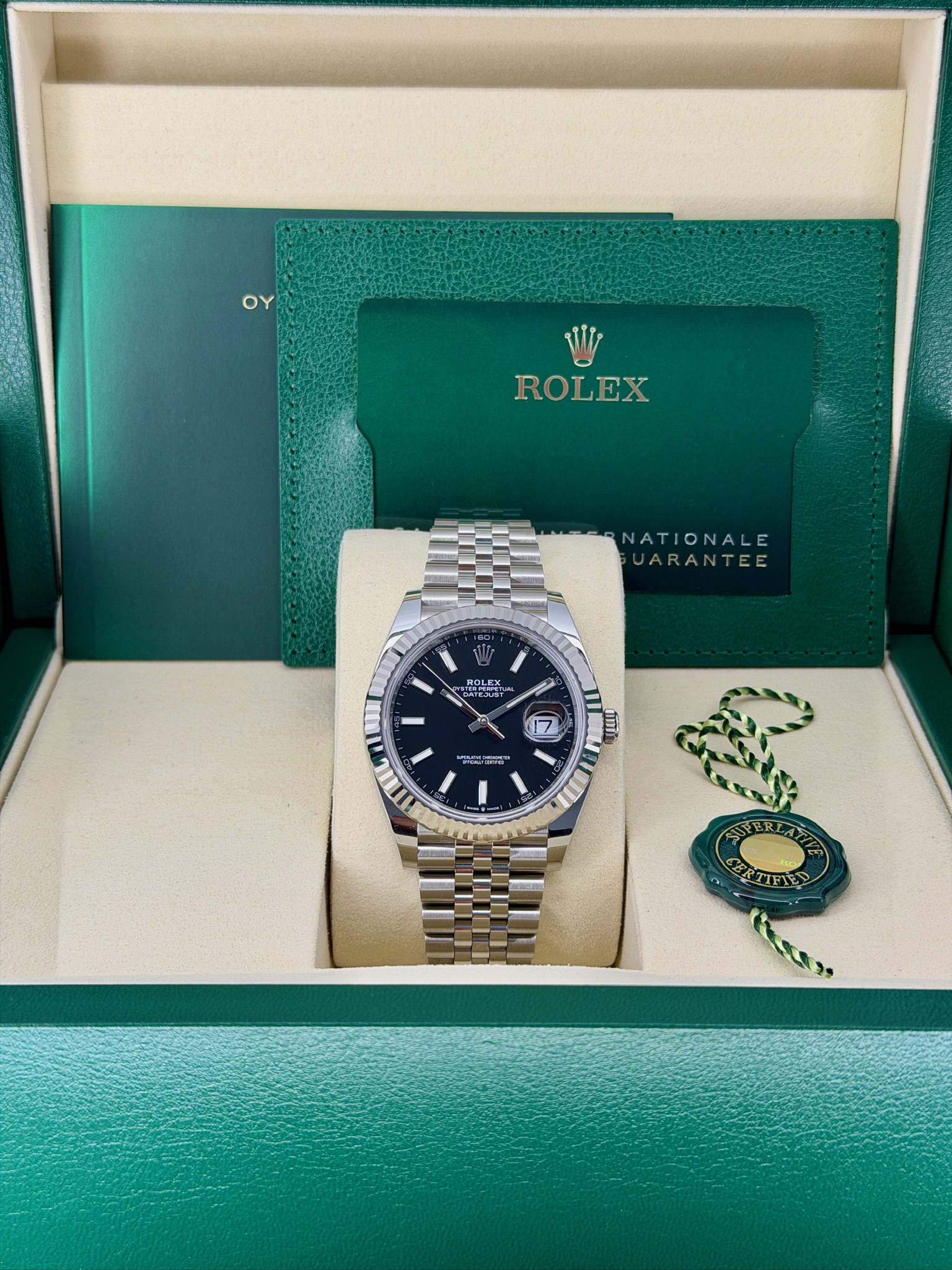 Box, papers & accessories – Original box, warranty card, booklets, extra links, and straps all add value.