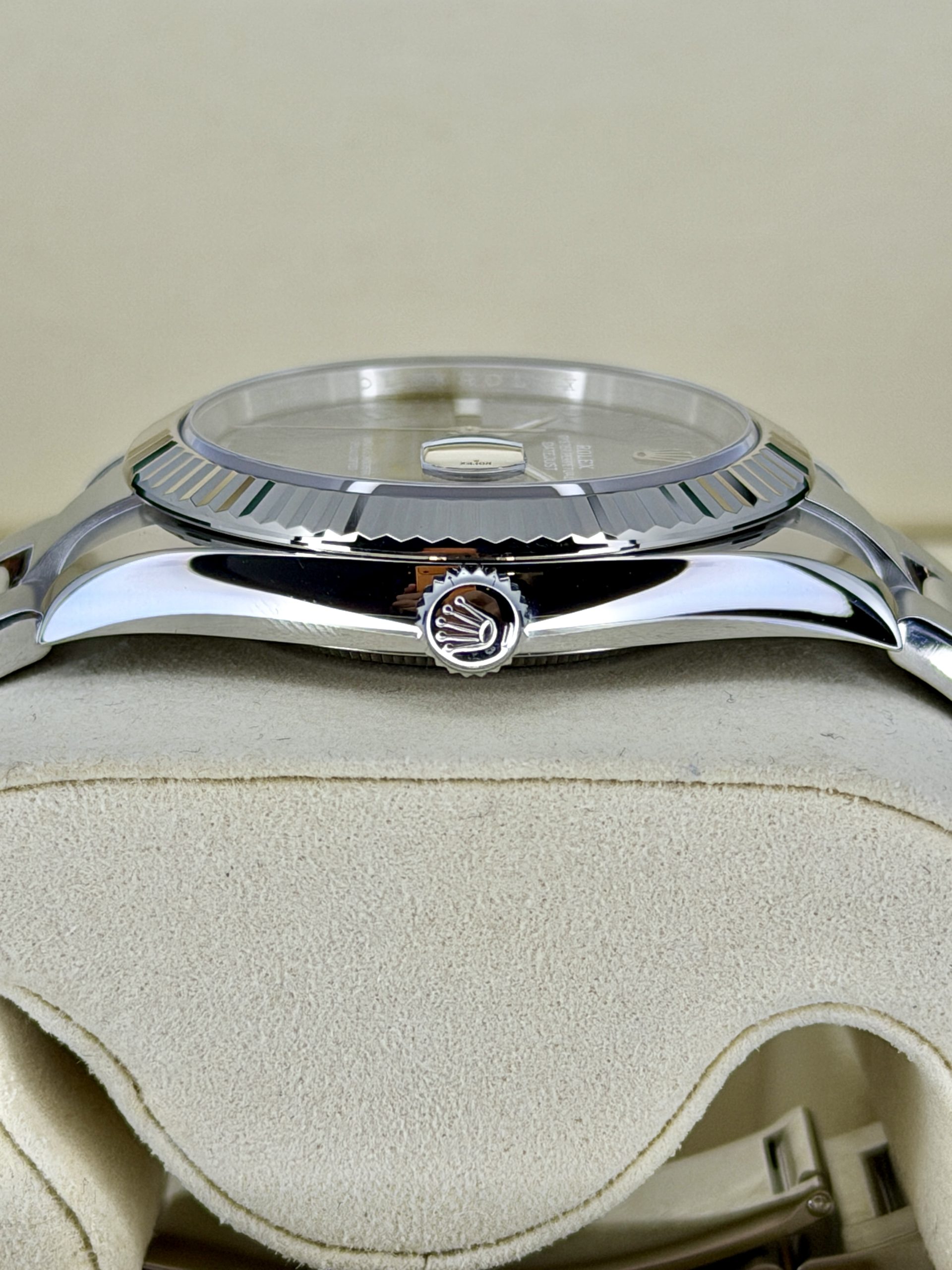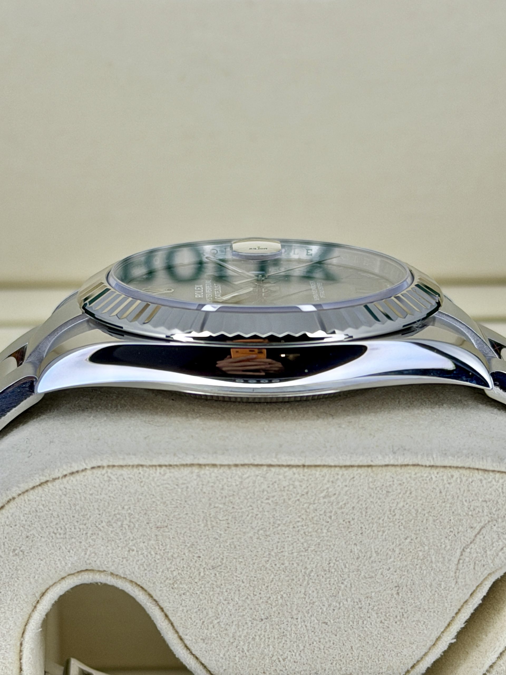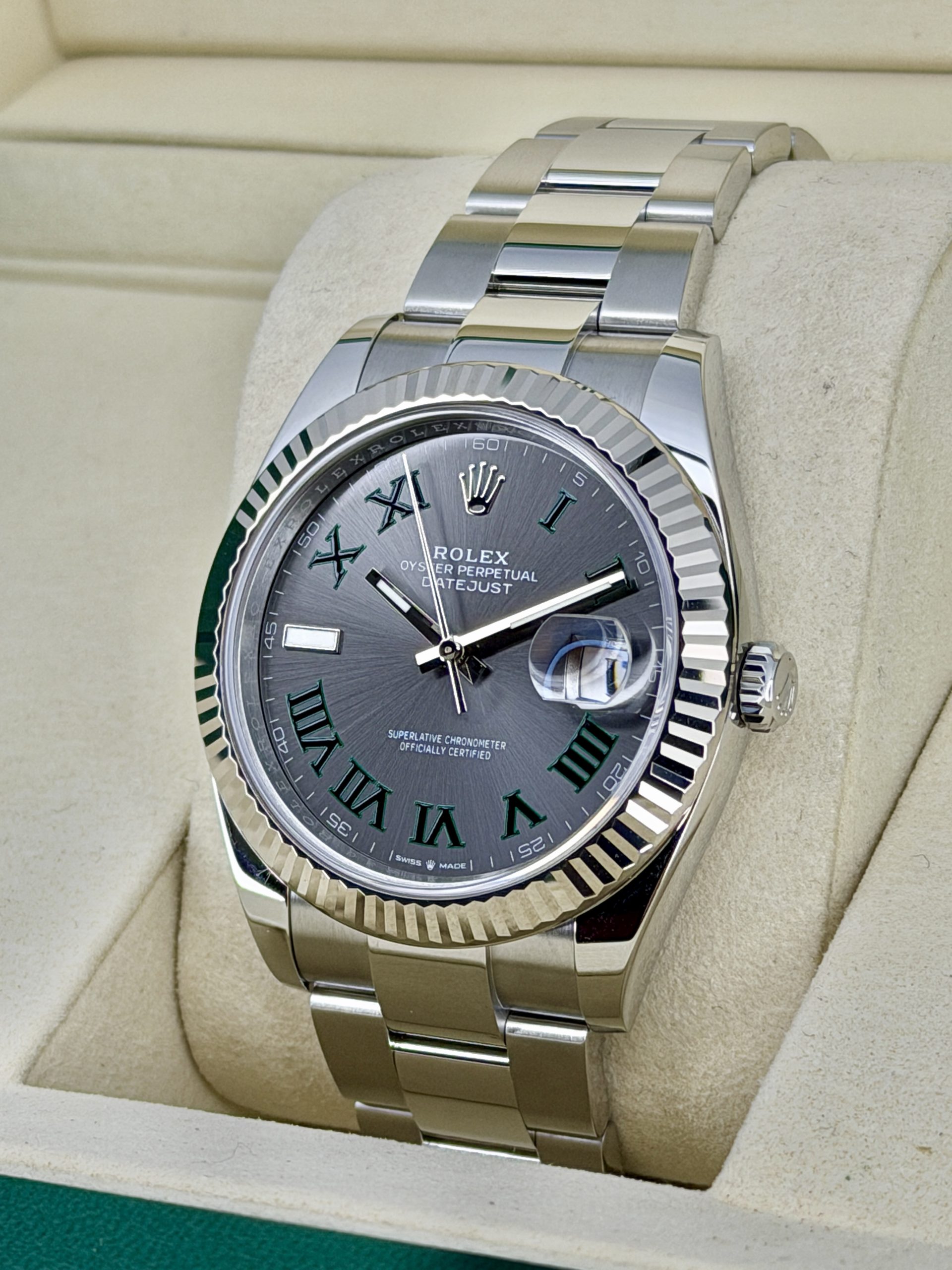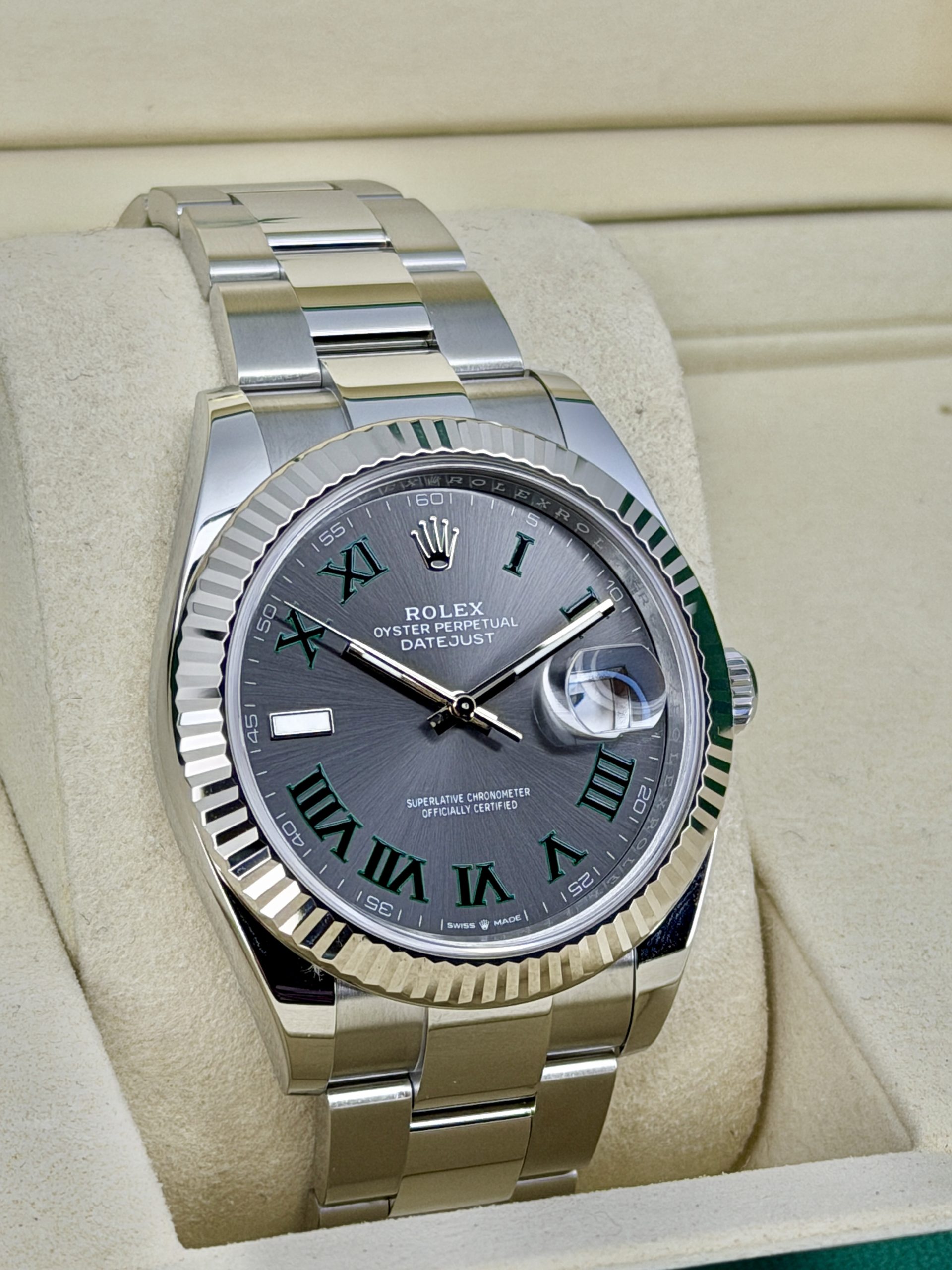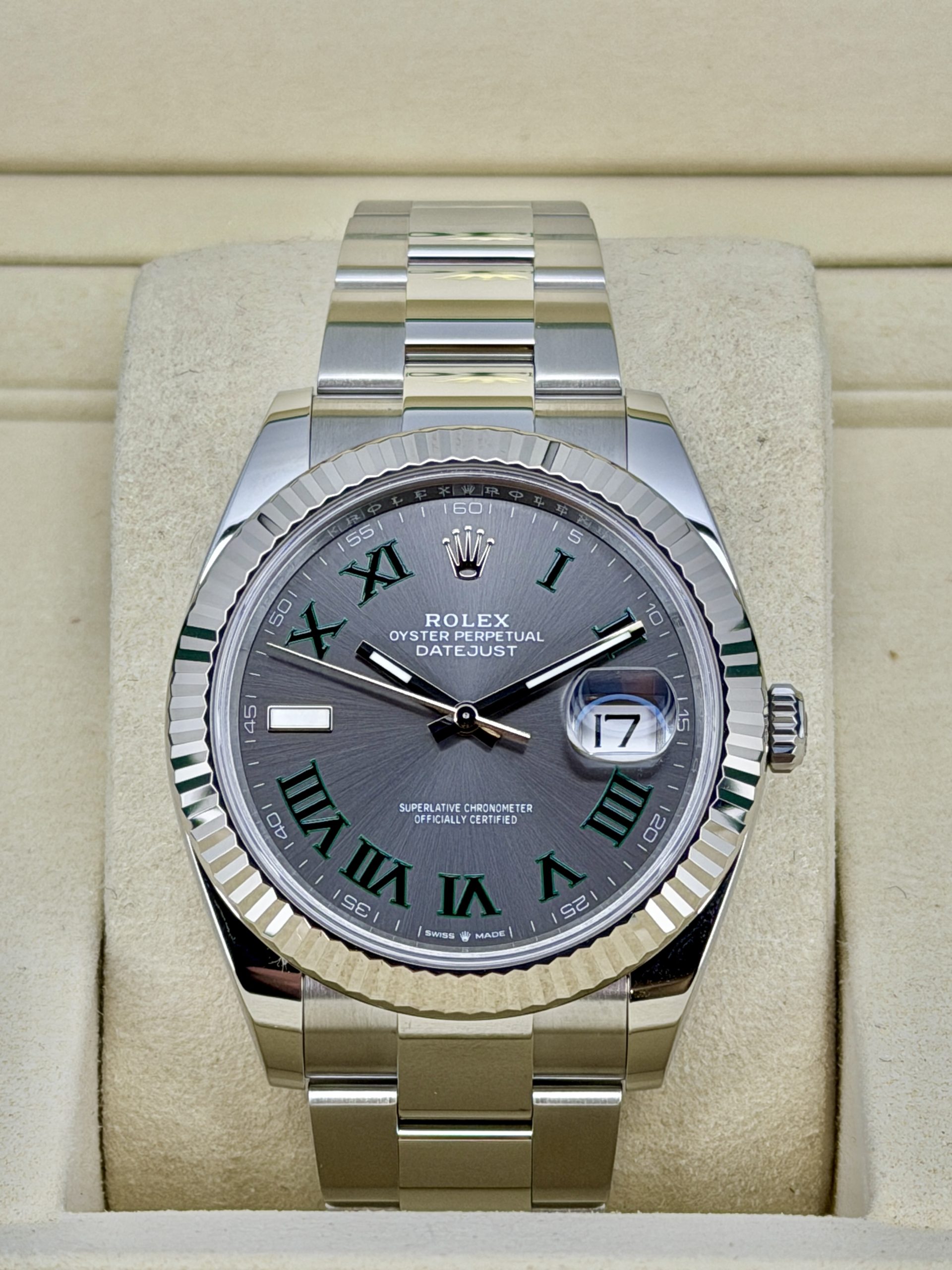 “The Wimbledon dial immediately catches your eye — the green and black gradient with Roman numerals is subtle but distinctive. The steel and white gold case keeps it feeling classic, and the Jubilee bracelet makes it sit really comfortably on the wrist. It’s versatile enough to wear with pretty much anything, but it still has that refined vibe that makes it feel special. Honestly, it’s one of those watches you find yourself reaching for again and again — stylish, effortless, and timeless.”