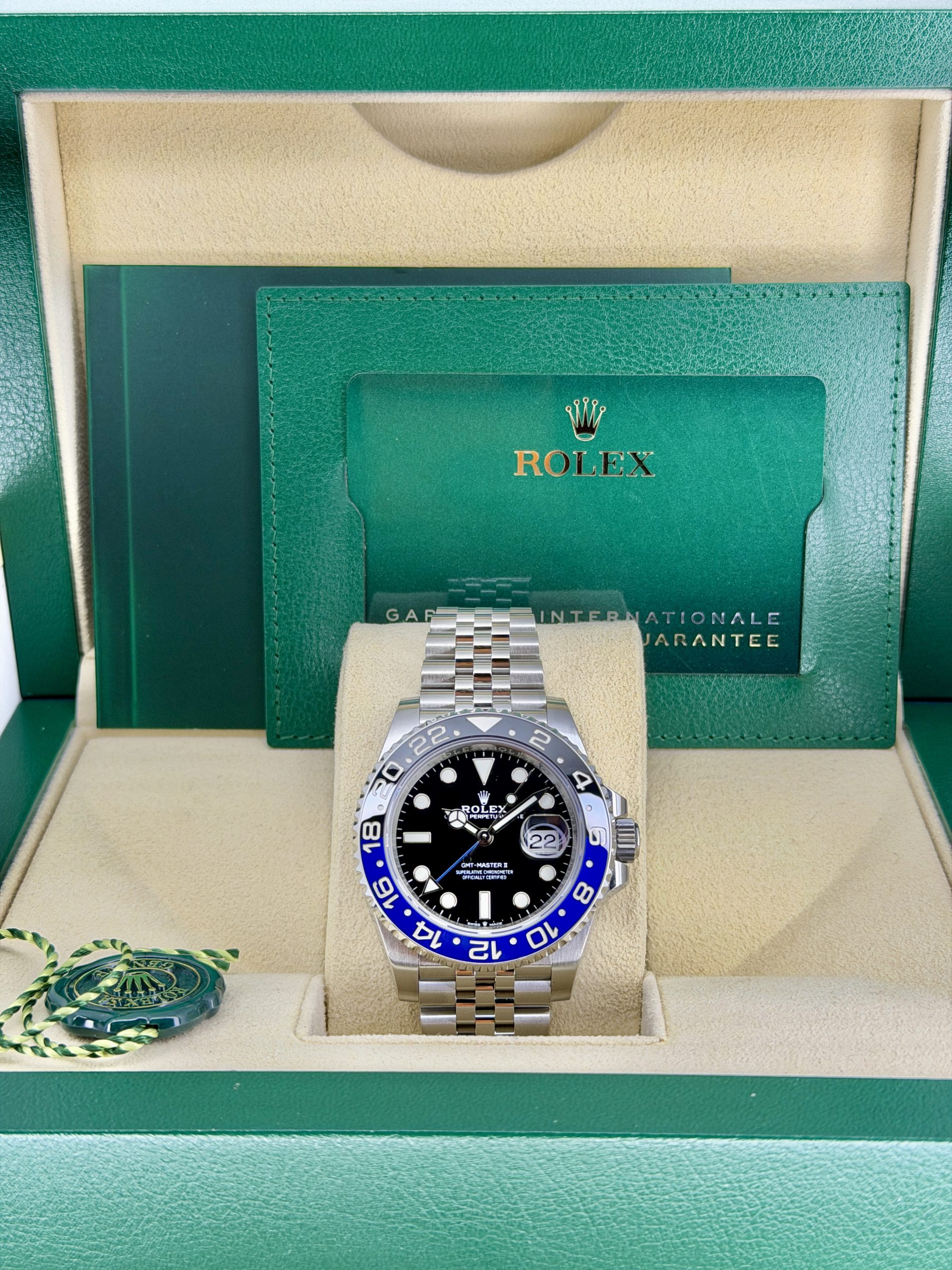 Box, papers & accessories – Original box, warranty card, booklets, extra links, and straps all add value.