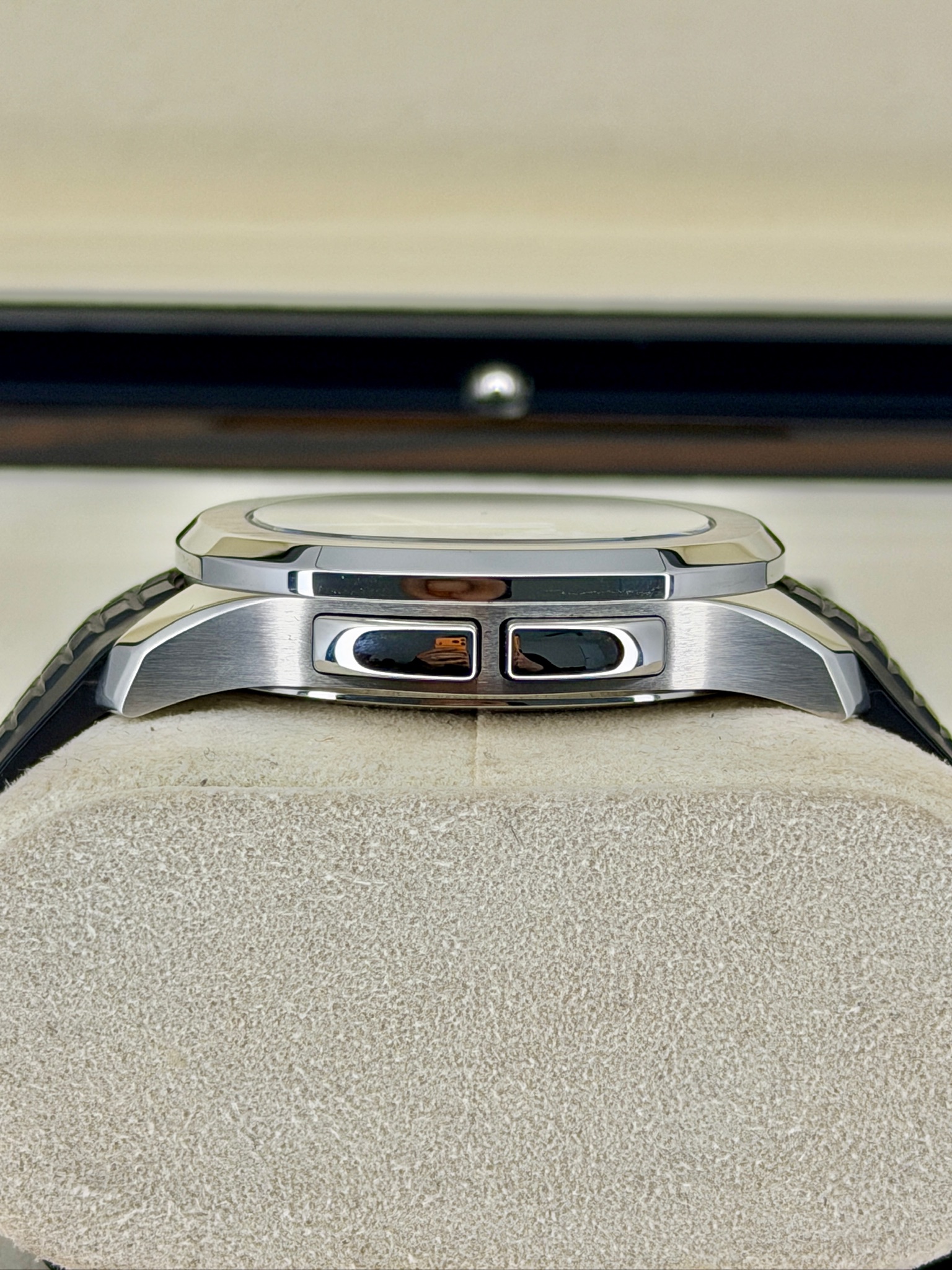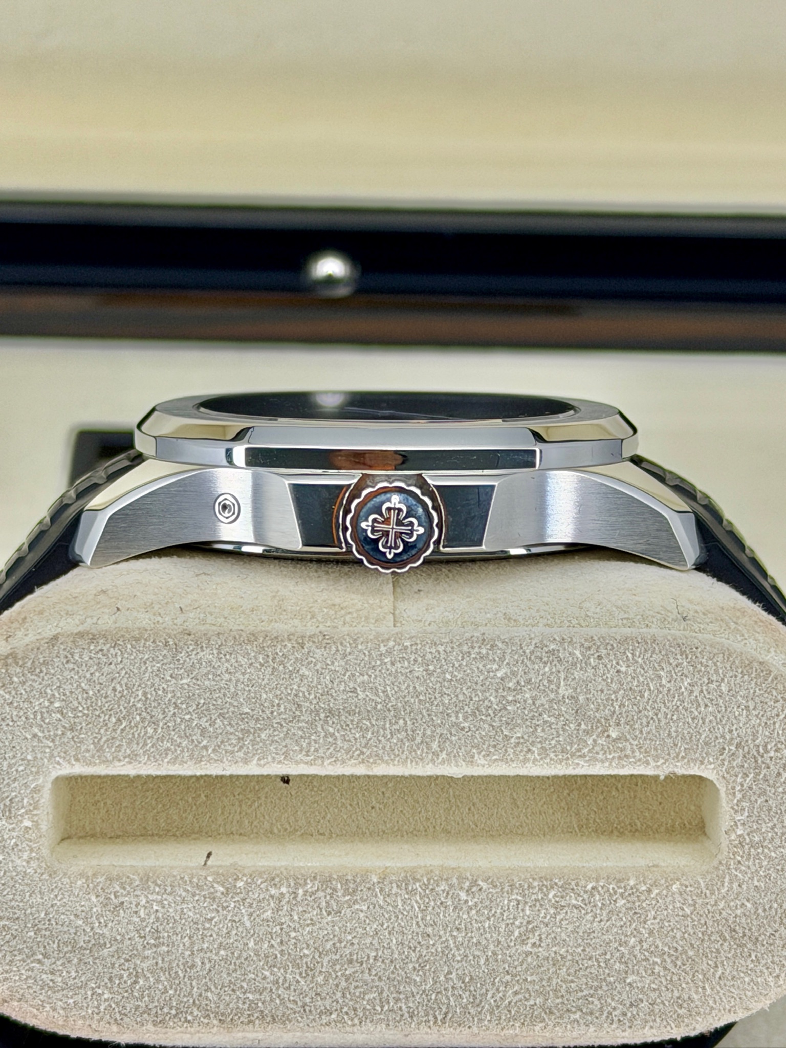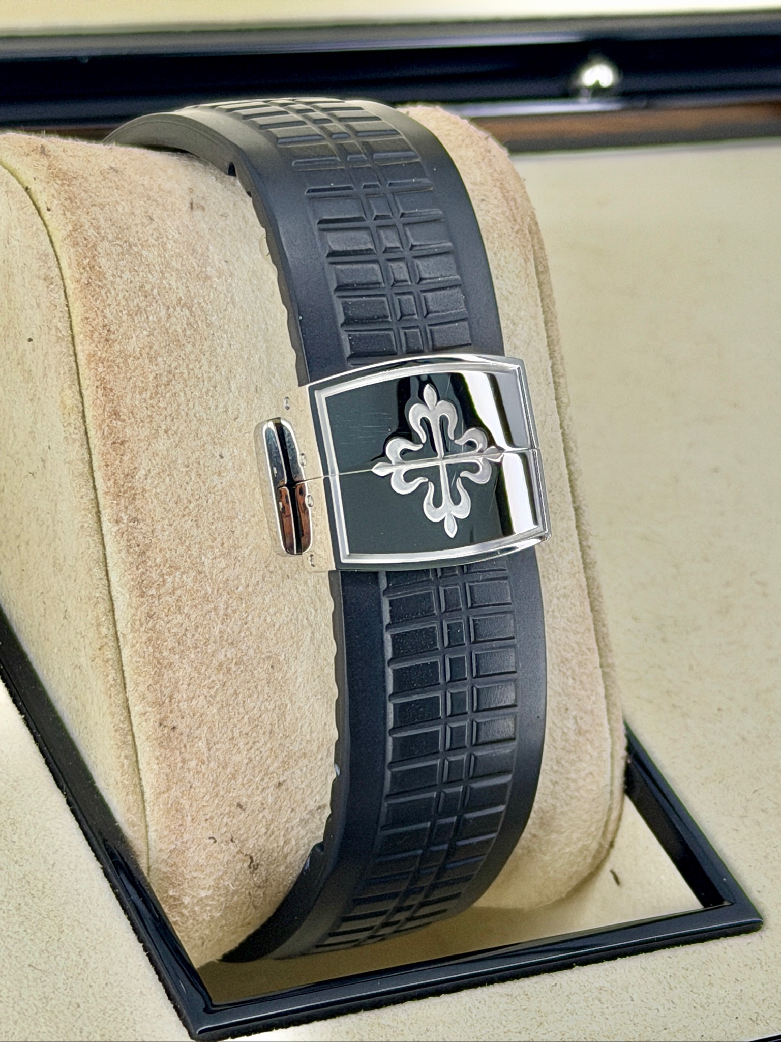 The Pre-Owned Patek Philippe Aquanaut 5164A Travel Time is a perfect blend of luxury, style, and practicality. Its stainless steel case and signature Aquanaut design give it a modern, sporty look that stands out without being flashy. The dual time function makes it ideal for frequent travelers, while the automatic movement ensures precision and reliability. The comfortable rubber strap adds a casual, wearable touch, making it perfect for everyday use. It’s a watch that’s functional, collectible, and effortlessly stylish—one that’s sure to turn heads wherever you go.