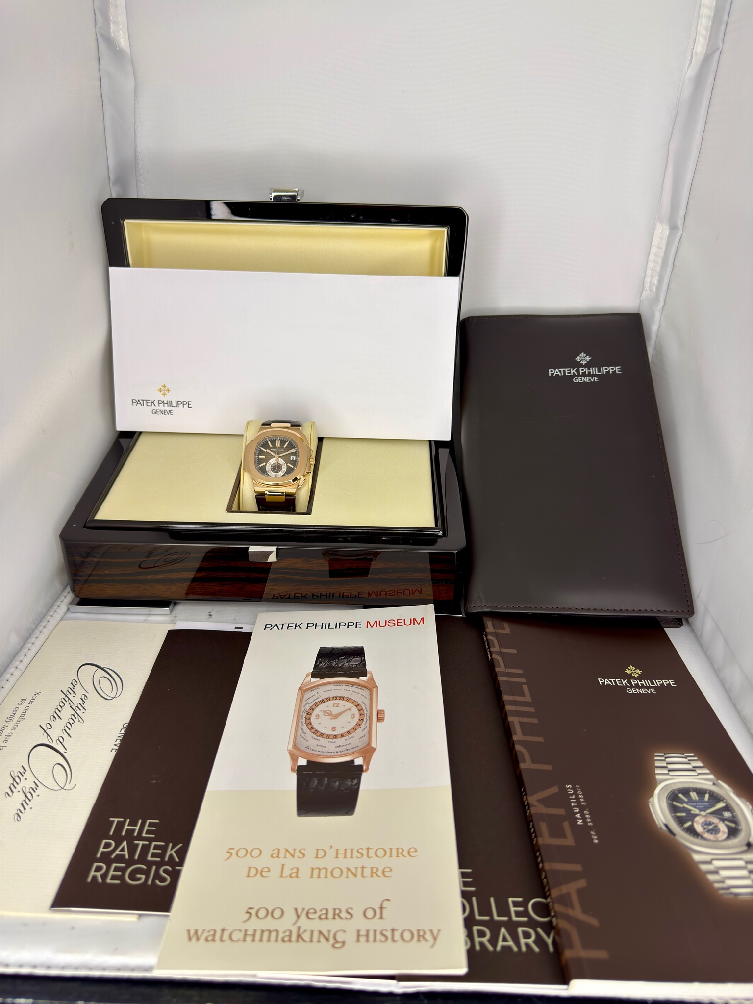 Box, papers & accessories – Original box, warranty card, booklets, extra links, and straps all add value.