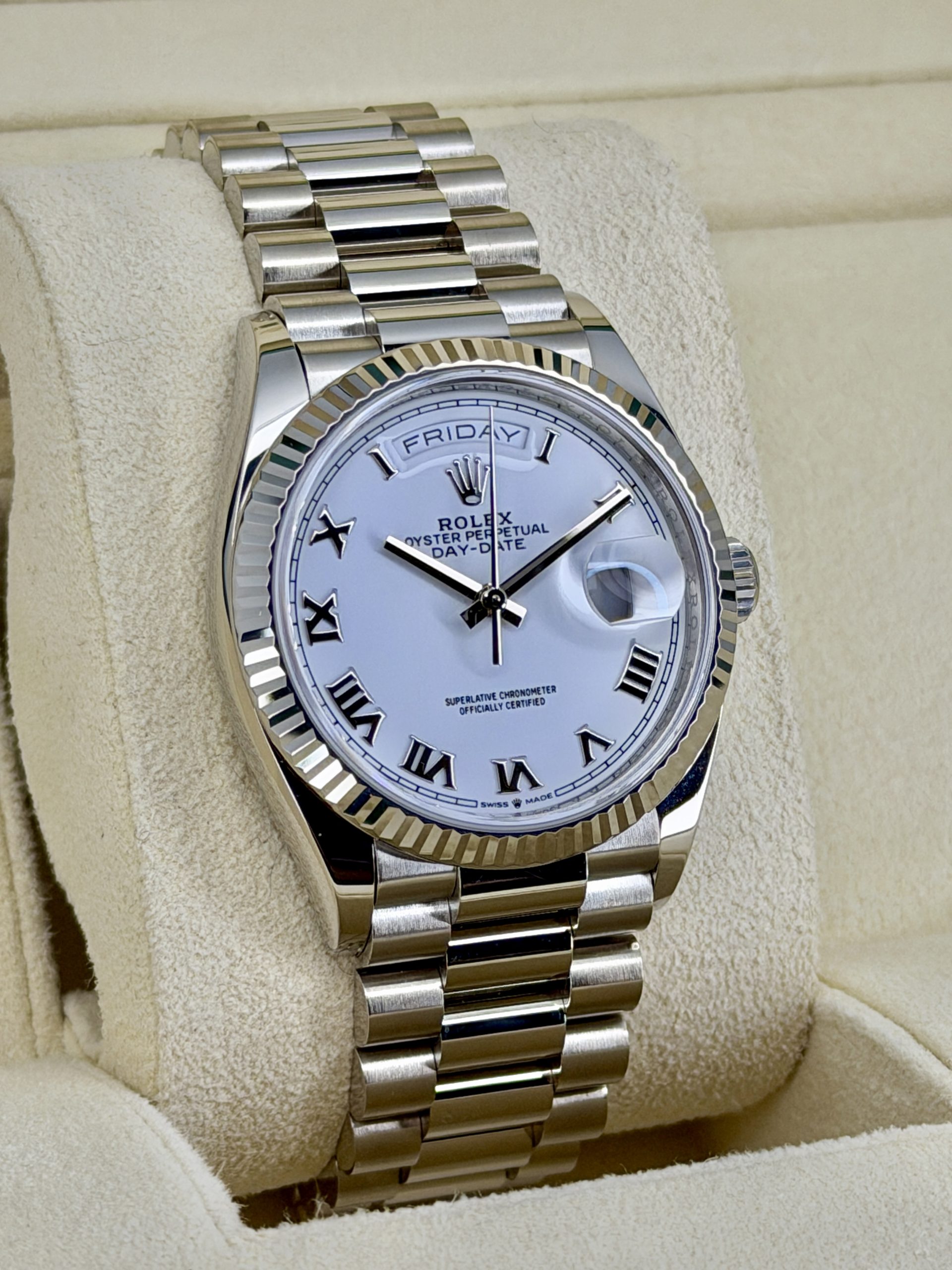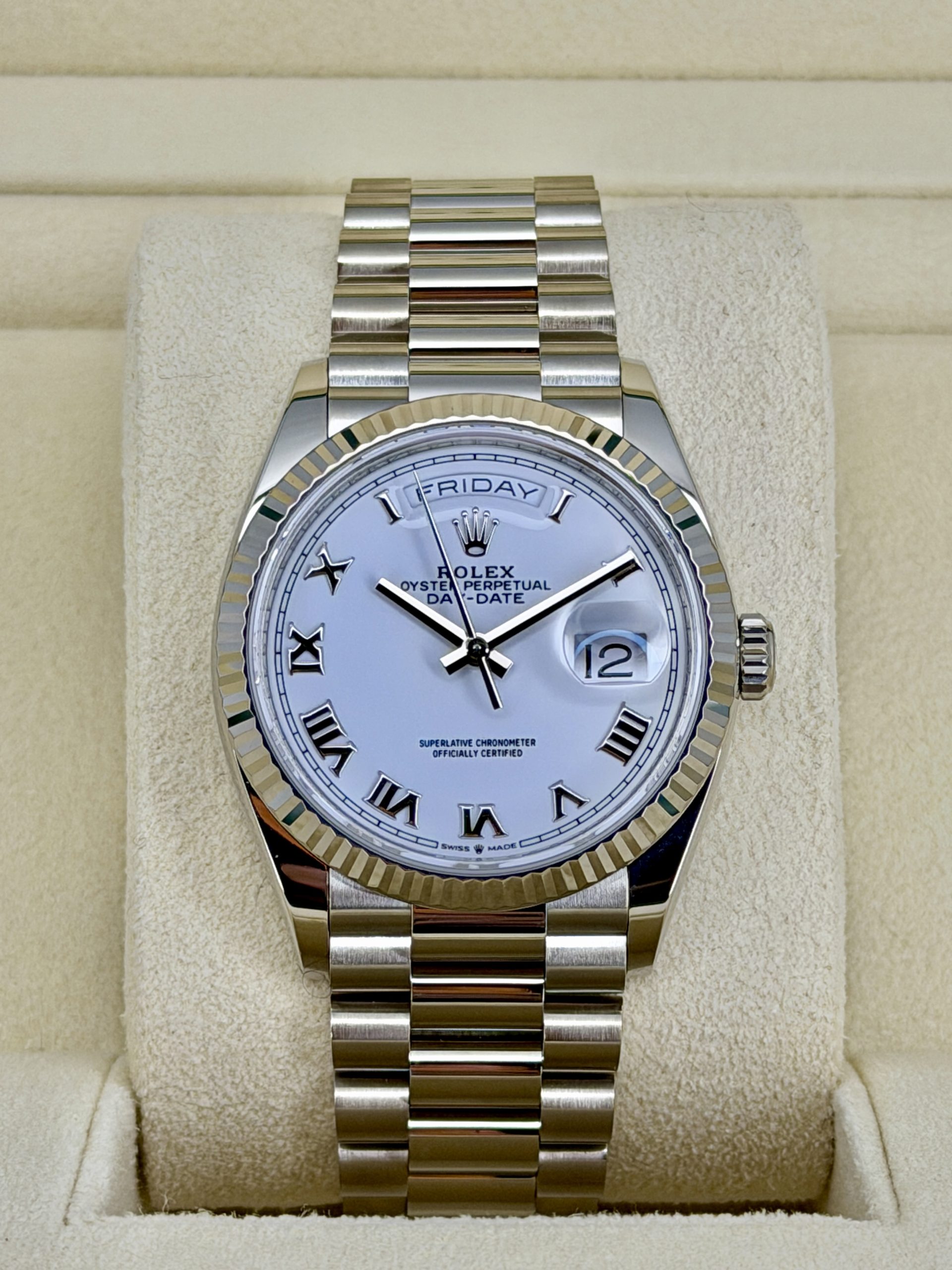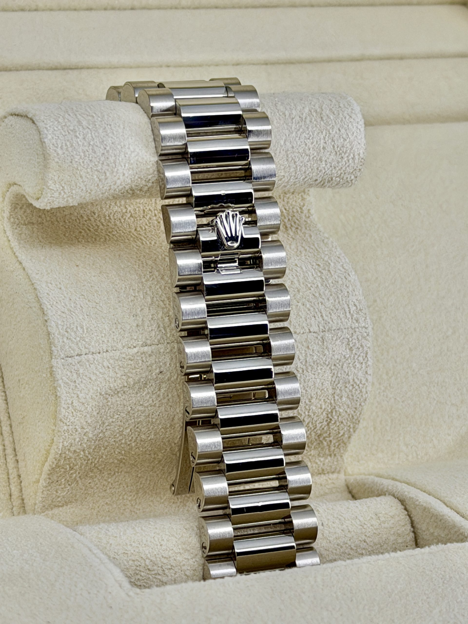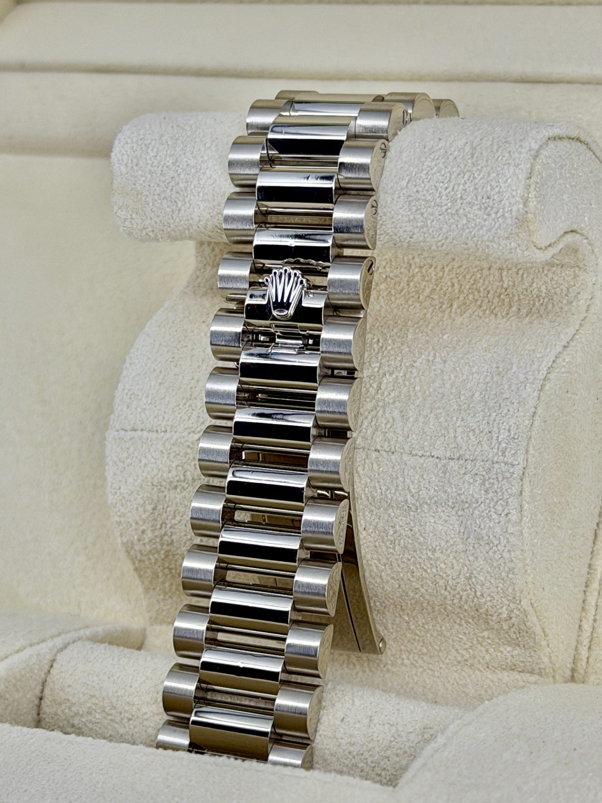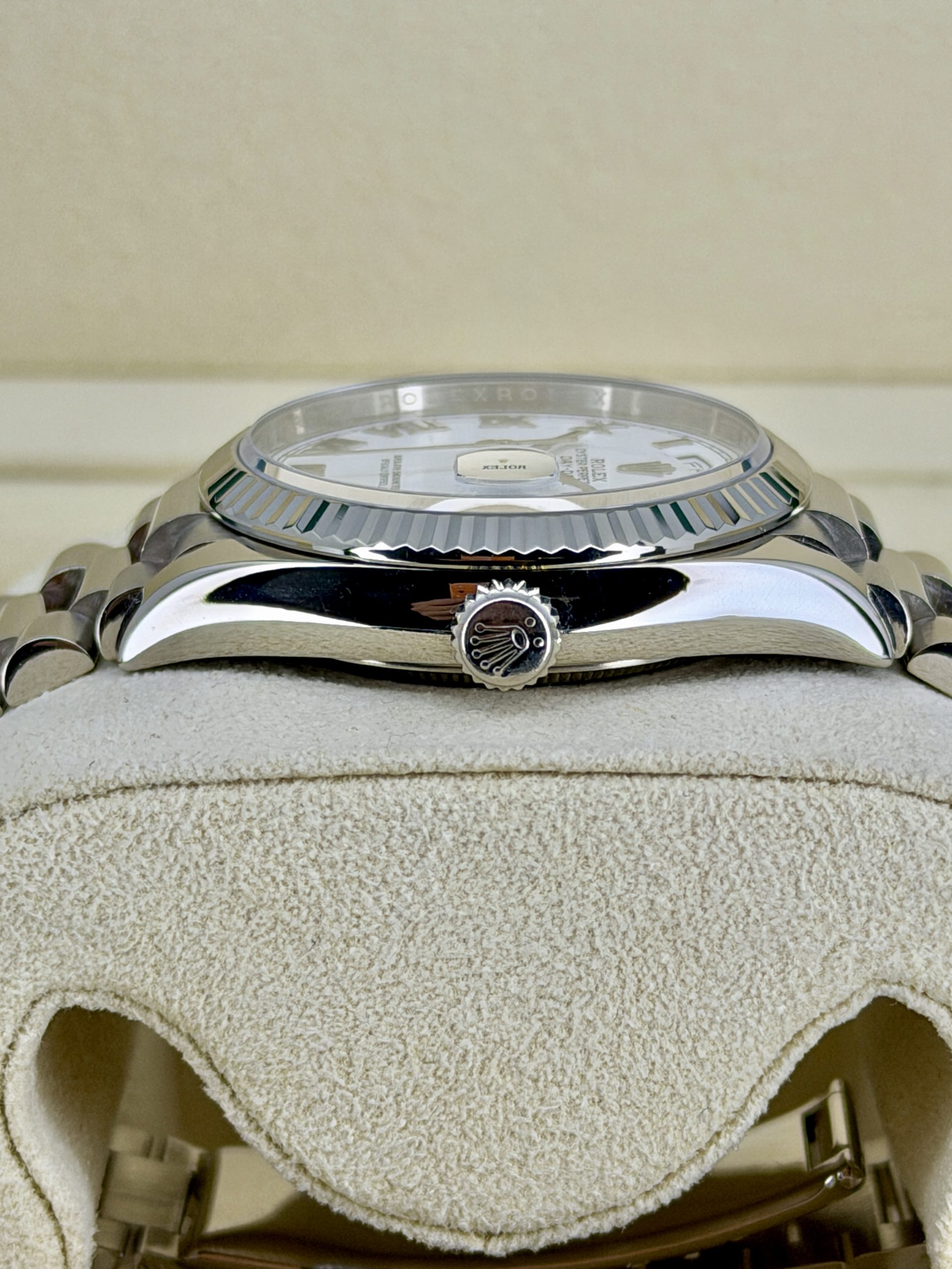 I honestly really like this one. The white gold keeps it super low-key, and the white dial with the Roman numerals just looks clean and classic. It feels solid on the wrist but really comfortable — that bracelet makes a huge difference. It’s easy to wear with pretty much anything and never feels like too much. It’s not the kind of watch you get tired of; it just grows on you. If you’re looking for something timeless that you can actually wear all the time, this one makes a lot of sense.